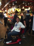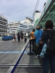 The next morning, we had a leisurely breakfast and did a little bit of shopping before taking a taxi to the port. Our cruise was on Princess cruise lines' Star Princess, which holds only roughly 2700 passengers, but the boarding process was the cattle call anyway. I won't bore you with the details, but the important thing is to say I had no trouble getting through any of the rooms or the lines in my scooter. Once we made it onto the ship, we went to our cabin to start unpacking our stuff. We had an accessible cabin with a balcony on the Baja deck, and it was incredibly spacious. I had plenty of room in the bathroom to maneuver, and the roll in shower had plenty of space and grab bars for me to get to the fold-down seat in the middle. The twin beds were, well, twin beds, and not super comfortable; I'm sure the mattresses were quite old, but I was able to get enough sleep each night.