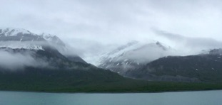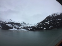 Despite the low hanging clouds, we actually had a really good view since we sailed so close to the mountains and the glaciers. We got some really great photos, and the rain never got much harder than a very soft drizzle. The other side of the ship actually got to see part of one of the glaciers cleave off, and although we were disappointed to not see it, we did hear it like a shotgun blast. The mist also lent a very ghostlike quality to the scenery that I enjoyed just as much, I think, as I would have a clear day.