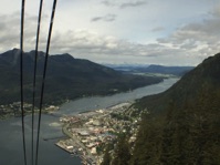 Technically this was the day we were scheduled to dock in Juneau, but I only knew it as helicopter day. I don't remember the last time I had been this nervous in my whole life. I had been on a large military helicopter, but never in a private sightseeing helicopter. I was so worried that we had anticipated this tour for so long and the weather wouldn't be great. Fortunately, the sun was shining and I couldn't have been happier! But first we had some time to kill before our afternoon tour. So we decided to take a cable car up to the top of the small mountain nearby. There was a small gift shop and a large viewing area where we got some awesome panoramic shots of the port. Afterwards, our wheelchair accessible taxi driver took us around Juneau for about a 30 minute windshield tour of the capital city.