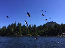 The town of Sitka is located on a small but very scenic island off the coast of mainland Alaska. In the late 1800s it was controlled by Russia, so it has a large Russian cultural influence. We signed up for a "Birds, Bears, & Barnacles" accessible tour that took us to a birds of prey rehabilitation center, where we got to see bald eagles up close. It was absolutely amazing! There were also many other species of raptors at the center in different stages of recovery from various injuries. After that, we went to a rehabilitation facility for bears. They had grizzly bears and black bears, and there were also many bald eagles just flying around like it was no big deal. Maybe for them, but for me it was absolutely incredible to see our national symbol just flying around in the wild. Our third and final stop was at a small Aquarian and fish hatchery.
