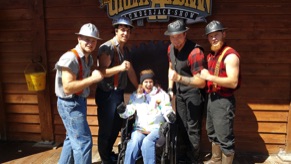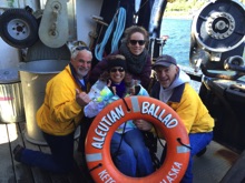 Next up, we boarded the Aleutian Ballad, one of the retired fishing/crabbing vessels from the TV show "Deadliest Catch" for the Crab Fishermen's Tour. During the ensuing three hours, we learned how fishermen in the waters off the coast of Alaska catch various kinds of fish and Alaskan King crab. We also learned why the show is called "Deadliest Catch." The stories the tour guides told us were absolutely mesmerizing and terrifying all at once. However, the best part of the tour was when we stopped just off the coast of a small island controlled by a small local Native American tribe. There must have been hundreds of bald eagles waiting in the trees for us. The tour guides started cutting up pieces of fish, and tossing them into the water. And that was when the show began! Imagine anywhere between 50 to 100 wild bald eagles coming in and grasping these pieces of fish out of the water with their huge talons. It was absolutely awe-inspiring! I had no trouble being rolled to the edge of the boat to watch, or to get to and from a comfortable place for the entire tour. I don't know if I would have been able to go to the bathroom, but since the tour was only three hours I didn't have to worry about it, fortunately. The tour guides were so incredibly nice and made sure that all my needs were taken care of. And we got some great pictures with them afterwards!