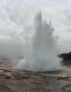 Speaking of geothermal, that was our next stop--Geysir, home of the Strokkur geyser. If you read one of my previous posts from when I saw Old Faithful, I was pretty skeptical of the name after I learned how not particularly regular that geyser actually is. Well, Strokkur does not disappoint. While its eruptions only last a few seconds, they happen every 4-8 minutes, so you don't have to sit around waiting for a couple of hours to see the next one. Something that is a little disturbing is that you can get so close to this geyser that you can literally almost touch the scalding hot boiling water as it erupts from the bowels of the earth. Clearly the Icelanders have no such liability concerns as the Americans.