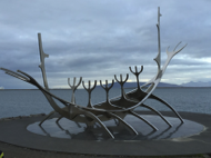 Then we were up and off to head back to the airport in Reykjavik. Once again we got beautiful views of the harbor and the city, and made a perfectly smooth landing. My trusty taxi driver Heymir (I'm sure I'm spelling his name wrong) came to pick me up, and after freshening up for a tiny bit at the hotel, I was headed out to the Harpa concert hall again, but this time for a show. On the way, I took the Shore and Sculpture Walk because there was one particular sculpture I wanted to see. The name of it starts with an S and EVERYONE who visits Reykjavik has to take a picture of it or with it. It's quite a beautiful piece of art in a neat setting, so I can see why.